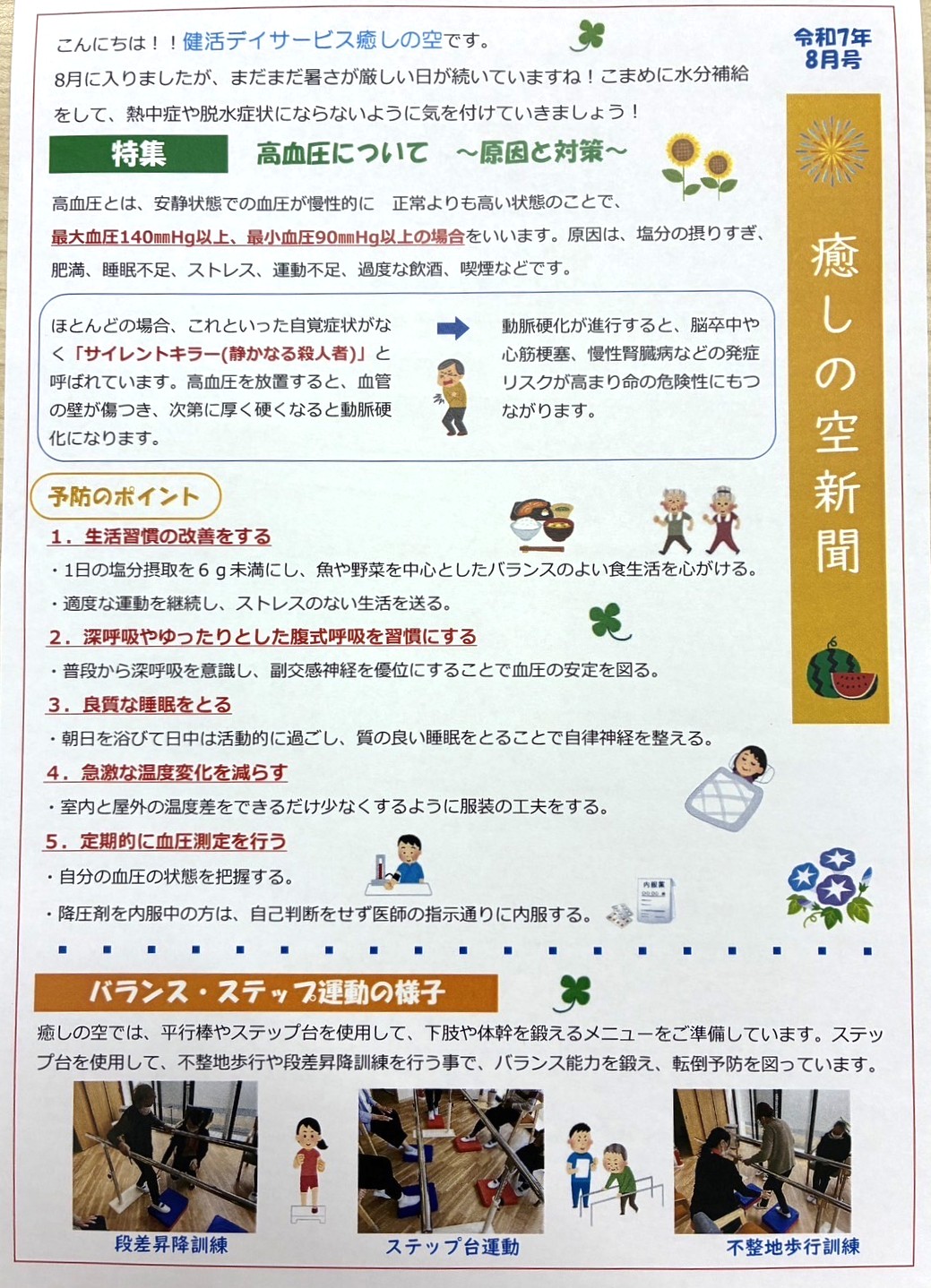 2025年8月7日 / 最終更新日時 : 2025年8月7日 株式会社クラーレ News 「癒しの空新聞」令和7年8月号です。 こんにちは!!健活デイサービス癒しの空です。 健活デイサービス癒しの空の「癒しの空新聞」令和7年8月号が発行されました。 ぜひご覧ください!!